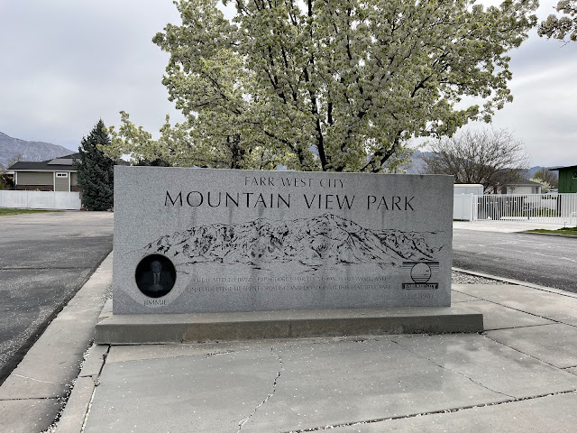 Mountain View Park in Farr West (not to be confused with the Mountain View Park in North Ogden) has a large wood chip based playground that features a lots of different types of play areas including a shaded "natural" rock obstacle course under a giant shade cloth, a traditional play structures with slides, a huge merry go round, and spinners, a separate parkour area and three different types of swings.